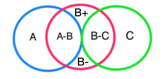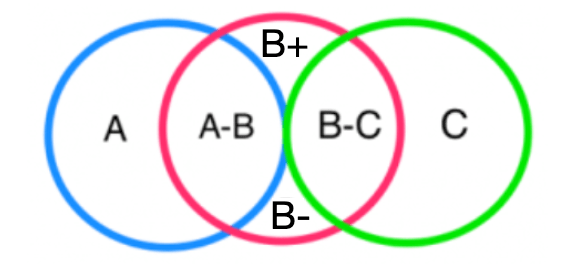 “B+” represents, for example, certain devotional practices that I was taught, by well-meaning Catholics, as necessary, but which are in fact over and above what the Church recommends or are even unhealthy for authentic spiritual growth.